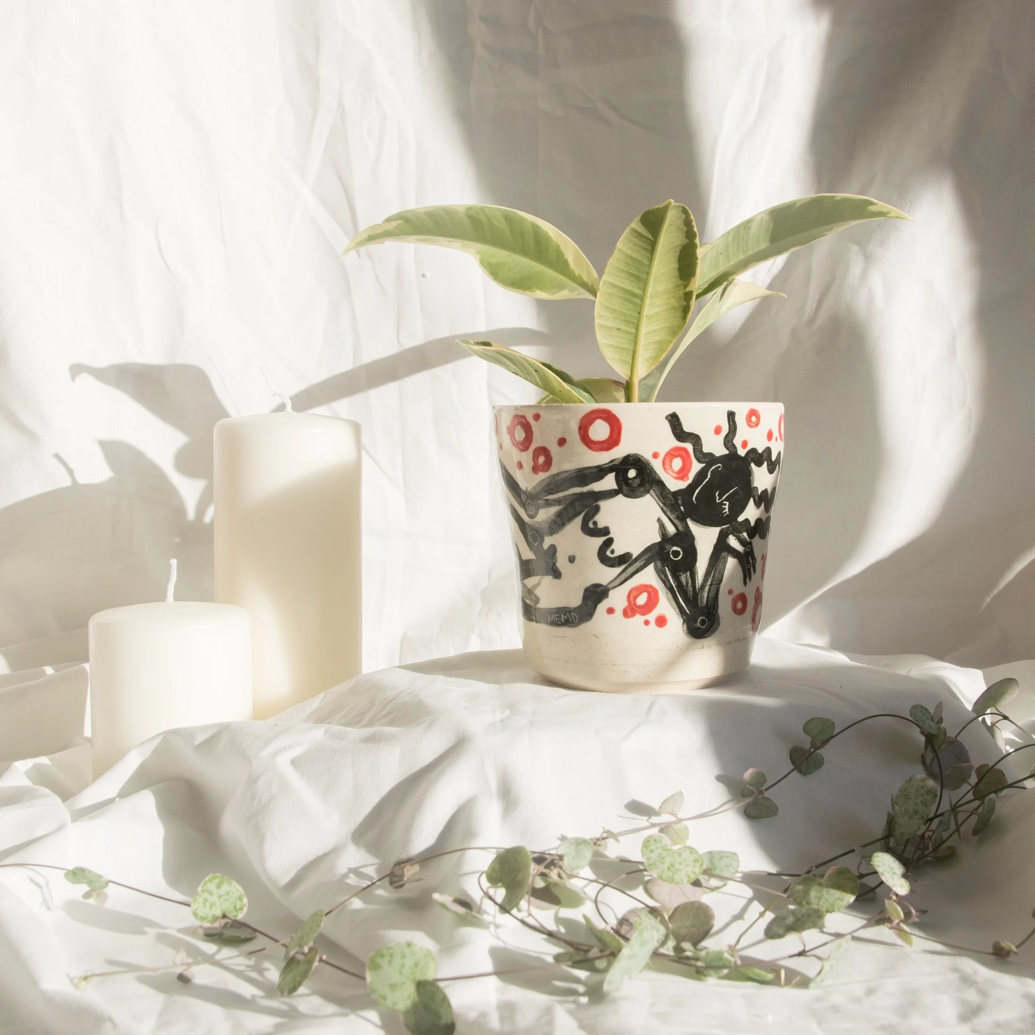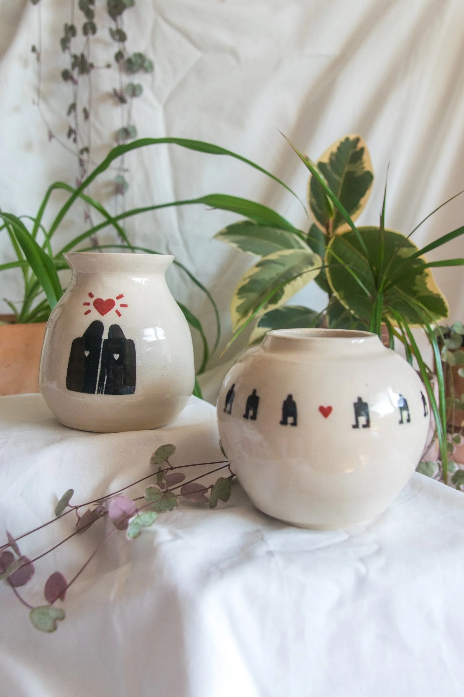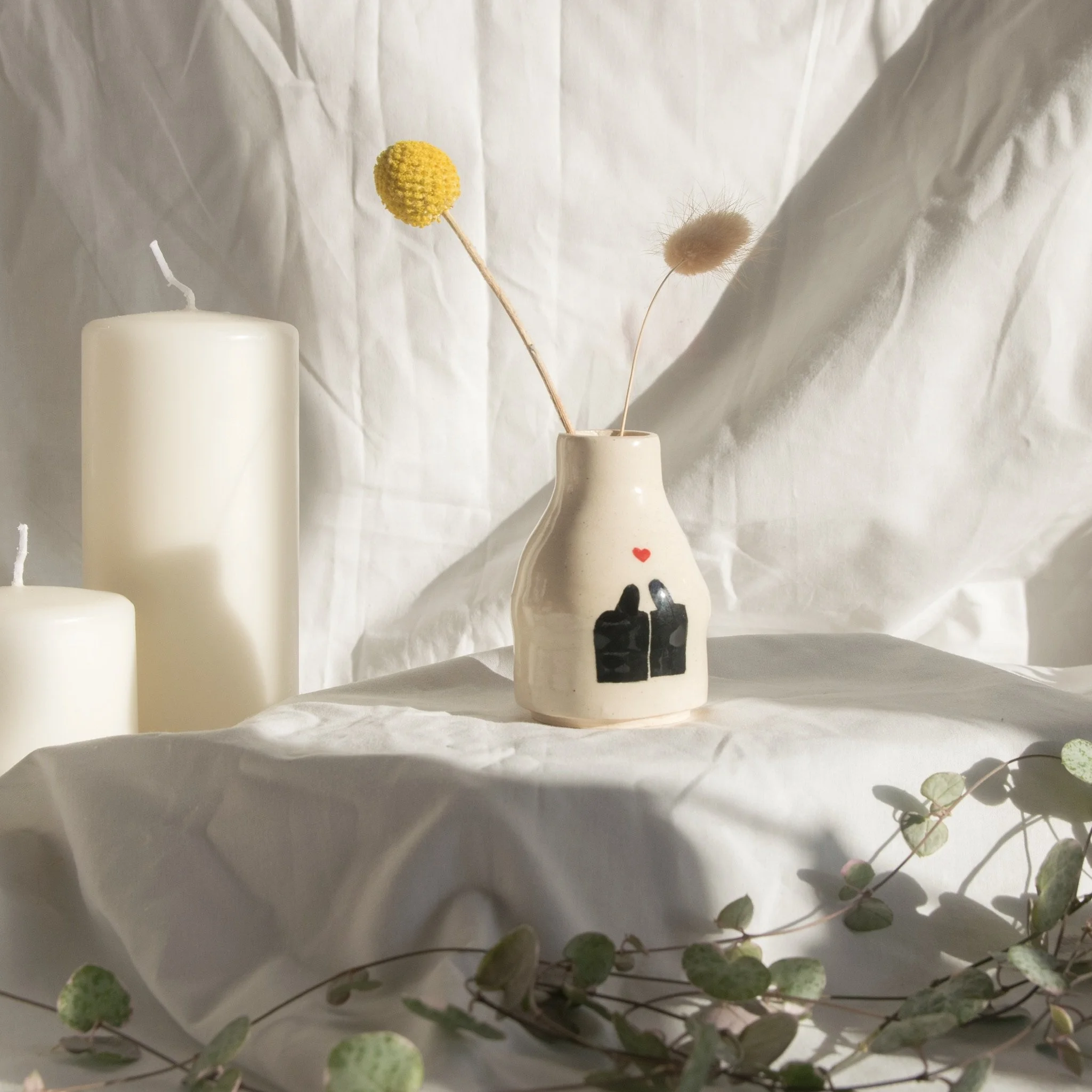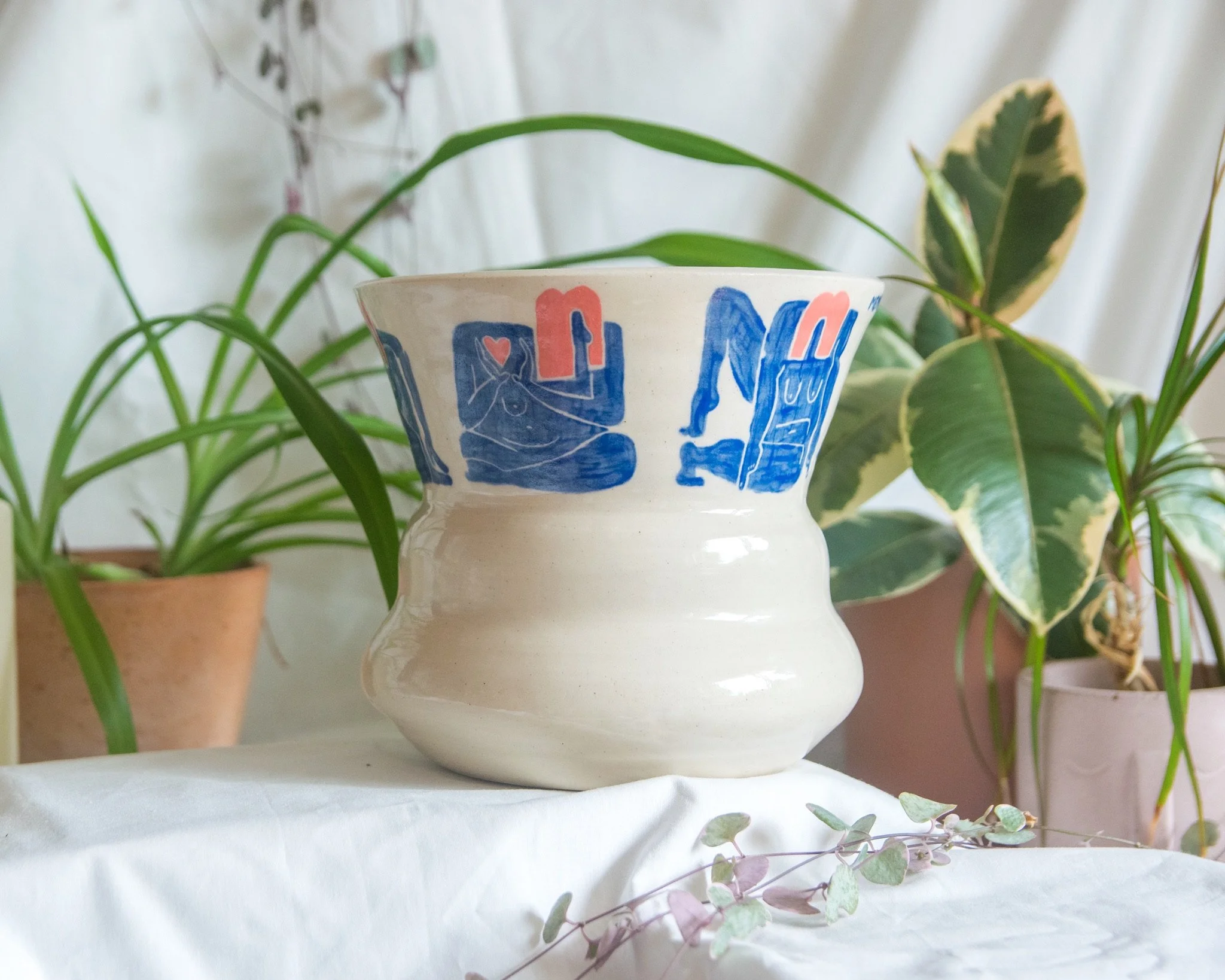 Below is a sampling of some of my past collaborations. I started collaborating with some of my friends because they’re talented artists in their own rights. Joining forces with my people brings me a lot of joy. I’ve partnered with painters, illustrators, and graphic designers — and even turned some of them into ceramicists too (75% conversion rate)! If you’re interested in collaborating, feel free to use the button below.